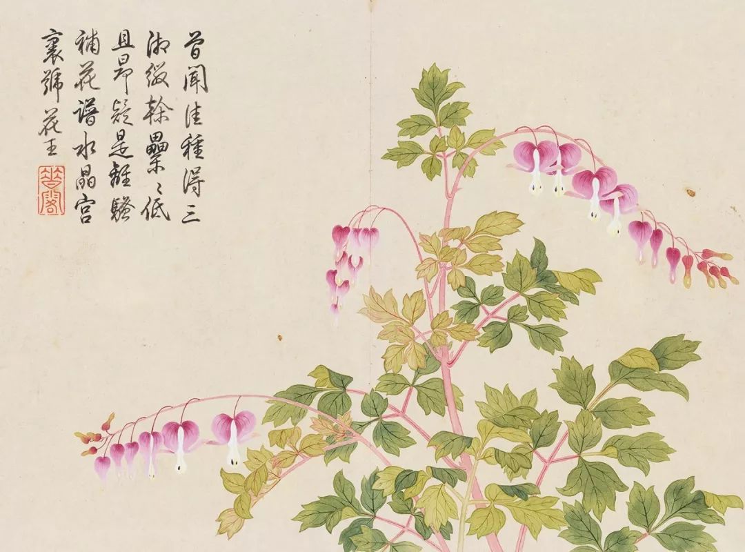 ?(六) 间绿流丹剪蒨罗,天然丽质耐吟哦。诗人强半称思蜀,不识岩花可识么。钤印:如水如镜、用笔在心(参见上书《乾隆卷》26、39页)