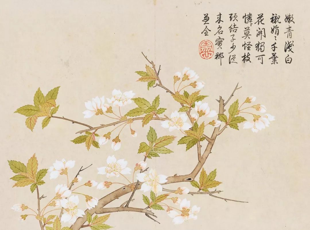 ?(八) 嫩青浅白衬娟娟,千叶花开独可怜。莫怪枝头结子少,从来名实那兼全。钤印:写心(参见上书《乾隆卷》34页)