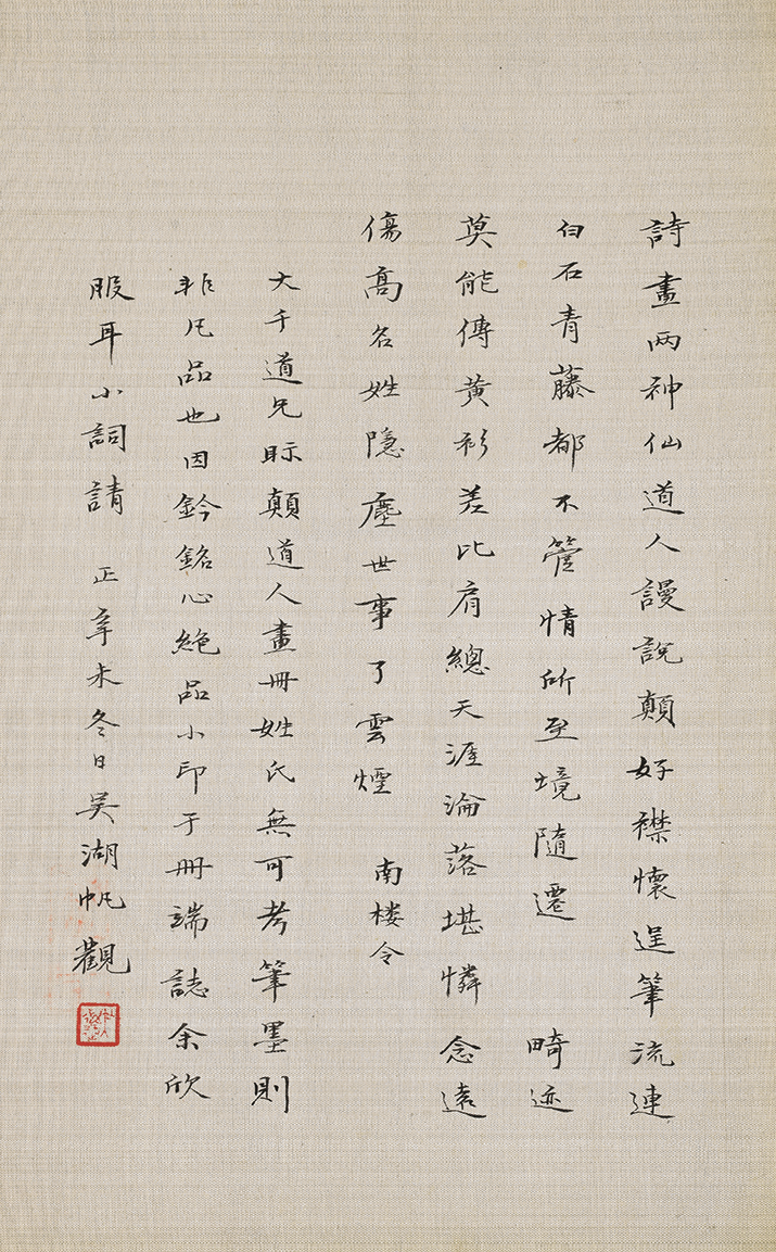 摘要:堆清寻冒雨,貯雪冷盈盘。为问陶彭泽,花黄枫自丹。 题跋:35×23cm×16? 约 0.7 平尺(每幅) 颠道人《花卉逸品册》在风格上则完美反映了颠道人于画史上的记载。 人立鹭惊起,惊起飞