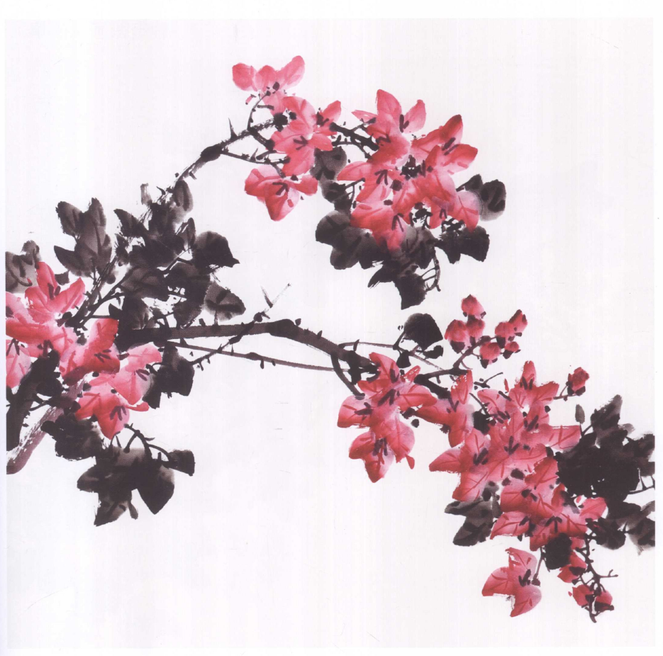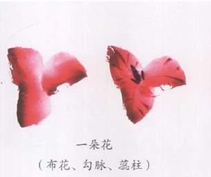 ? ? ? ?一串花的布局要错落,有疏密,外形要有缺口;布花后再用胭脂勾花脉、点花蕊、穿花轴、画花托。