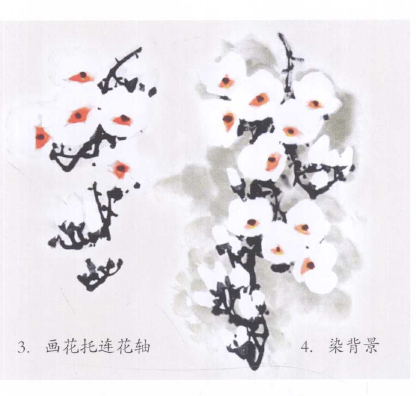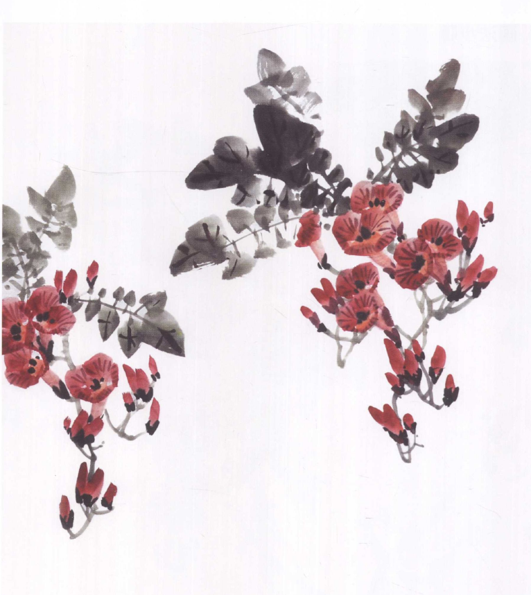 ? ? ? ?方法同凌霄花,蘸水颜色调浅,画出花筒,稍干用浓墨画花托。