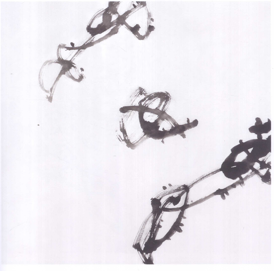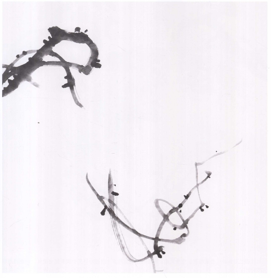 步骤二:画藤枝,连花柄。藤枝的穿插要注意粗细、疏密、横斜变化,线的附近要增加大小不同的点,使画面丰富。