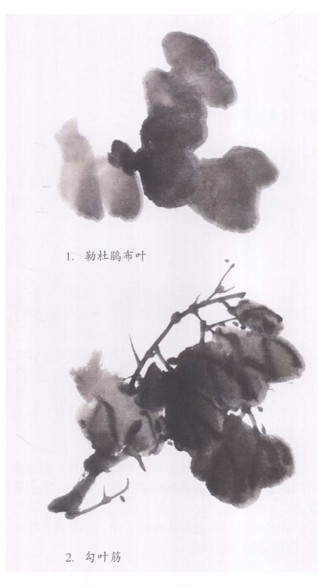 ? ? ? ?一组叶子画法:画一组叶子要分出浓淡和疏密,形状和方向要有变化。