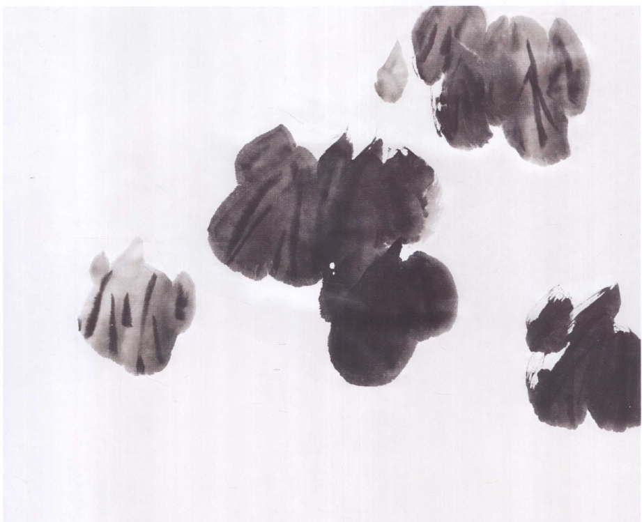 中部花:中号白云笔饱蘸稍淡酞青蓝、胭脂成紫色至笔根;沿S线布局,三五笔为一组,然后转向,如此往复成S线,直至笔干待用。