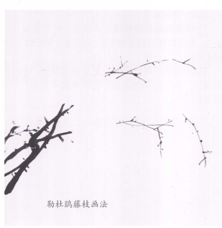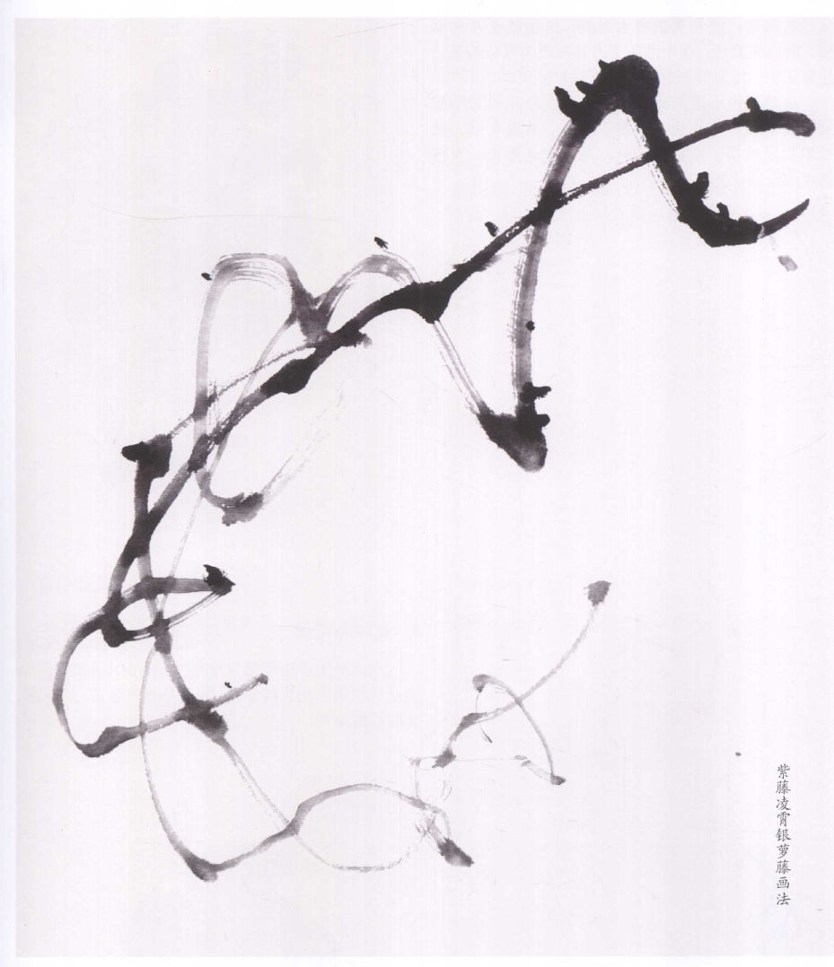 基本画法:用长锋笔蘸水、调淡墨,再蘸浓墨画藤,用笔要有中侧锋和顺逆及快慢变化,要有干湿浓淡.曲直方圆和疏密、轻重缓急.粗细的变化。尽量避免出现“米”字交叉(数枝交于一点)。
