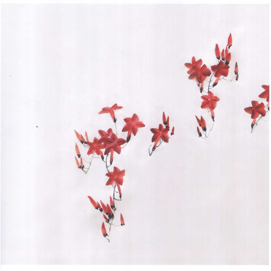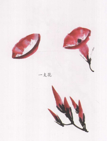 ? ? ? ?笔毫玷入白粉,调入少许曙红,用顺锋拖笔写花苞,浓墨画花托。
