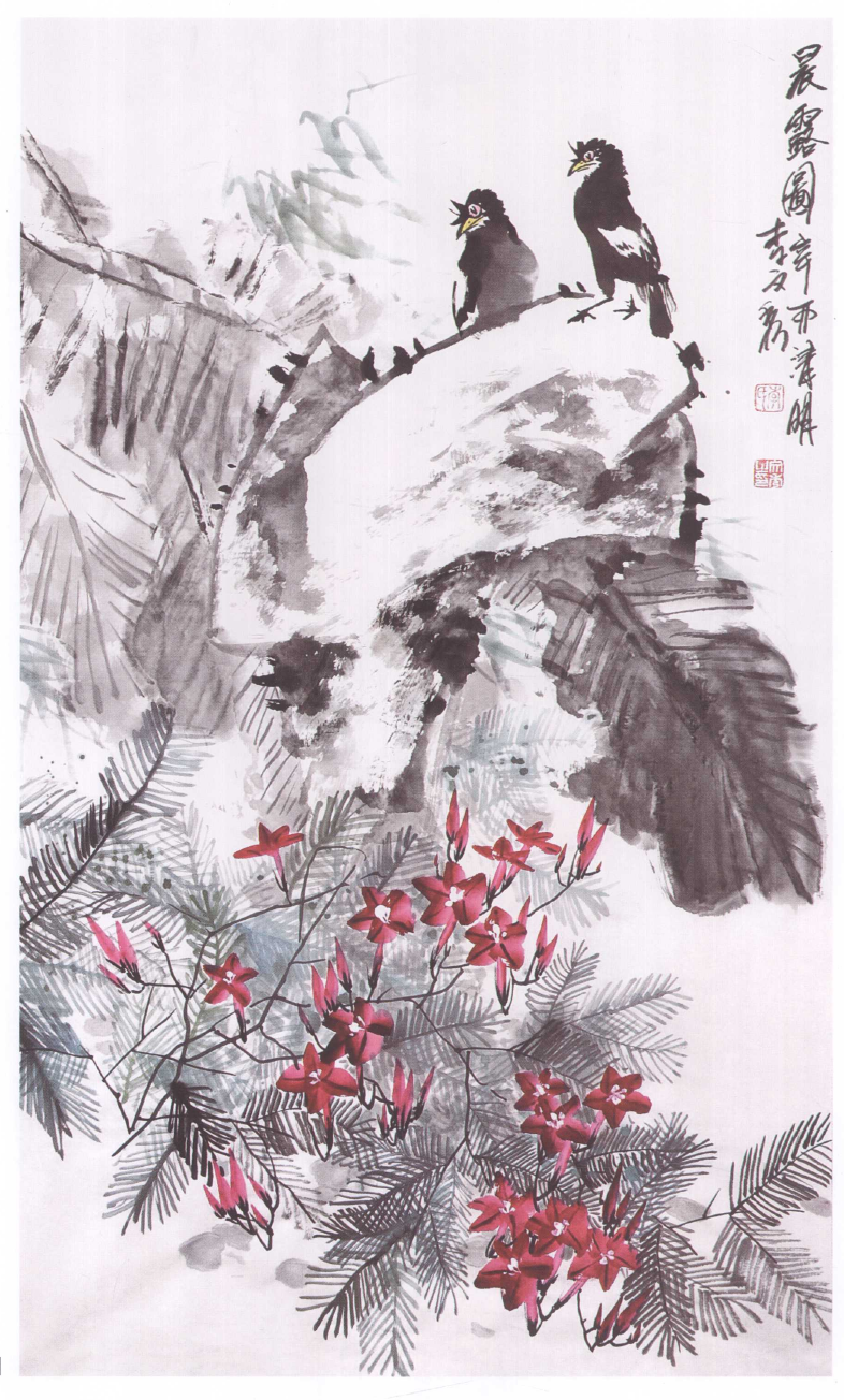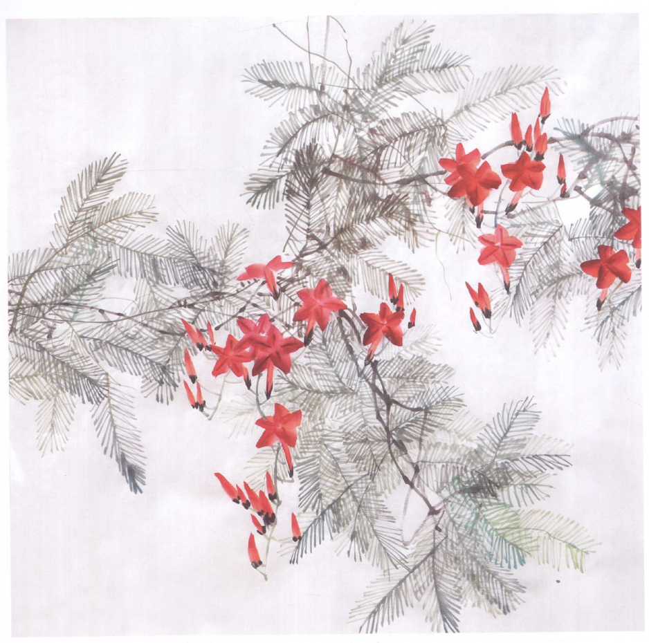 ? ? ? ?染花心:将干净笔毫蘸淡朱磦染花心。